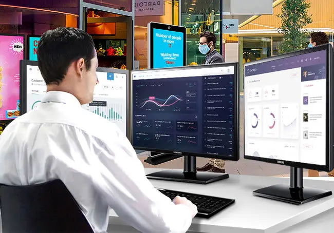 Digital Signage tiene un modulo de control (incidencias, información de la emisión en curso por establecimiento, etc.) y en la modalidad de servicio el cliente , a través de link, puede ver la situación de cada pantalla en cada lugar.